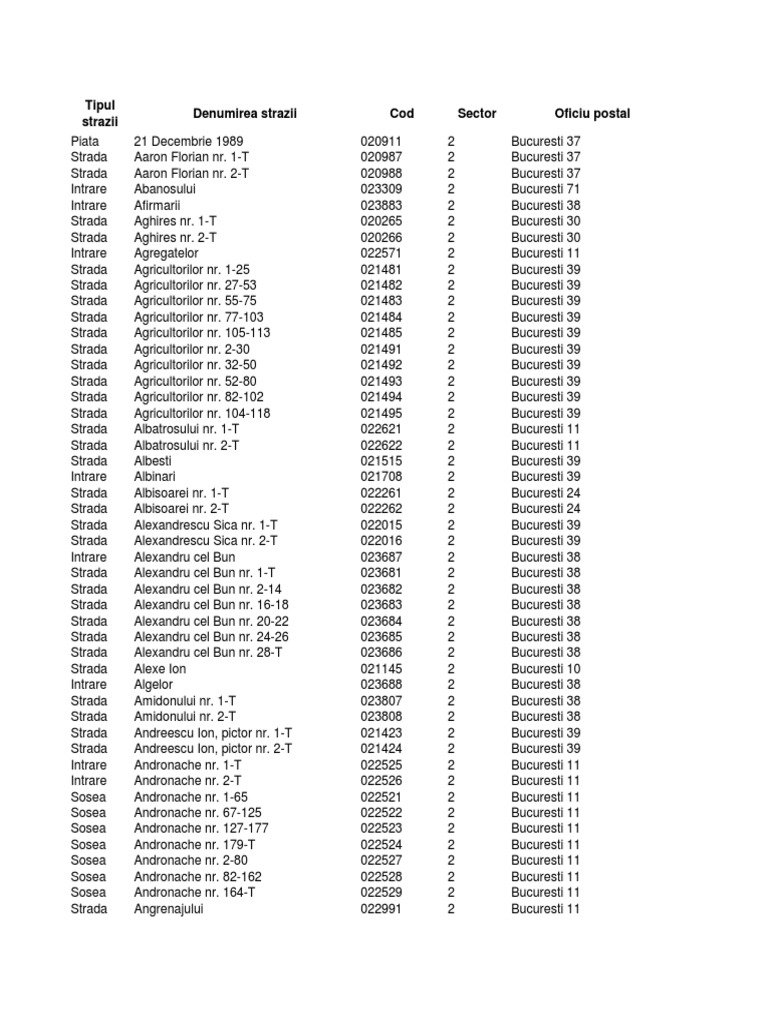 Sunt afisate codurile de la 1 la 30 din totalul de 1465 coduri postale gasite. Aici găsiți cea mai completă bază de date și cele mai bune motoare de căutare pentru codurile poștale din românia puteți căuta un cod poștal în funcție de adresă, sau puteți căuta o adresă după codul poștal. Sector 4, oficiu bucureşti 82, stradă racovita emil nr.