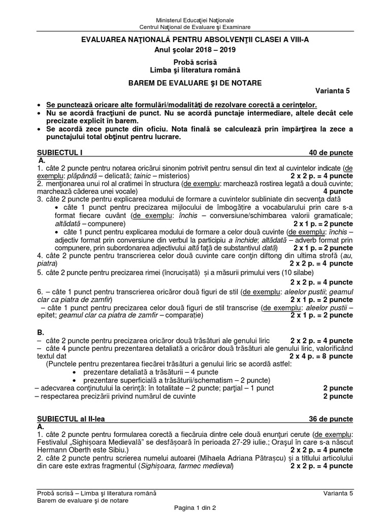Barem evaluare nationala 2019 romana. Check spelling or type a new query. We did not find results for: